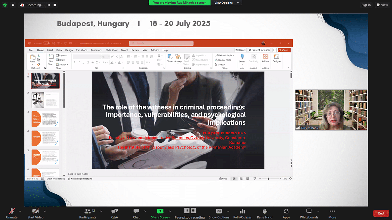 Prof. Dr. Rus MihaelaFaculty of Law and Administrative Sciences, Ovidius University, Constanța, Romania / The Institute of Philosophy and Psychology of the Romanian Academy, RomaniaThe role of the witness in criminal proceedings: importance, vulnerabilities, and psychological implications